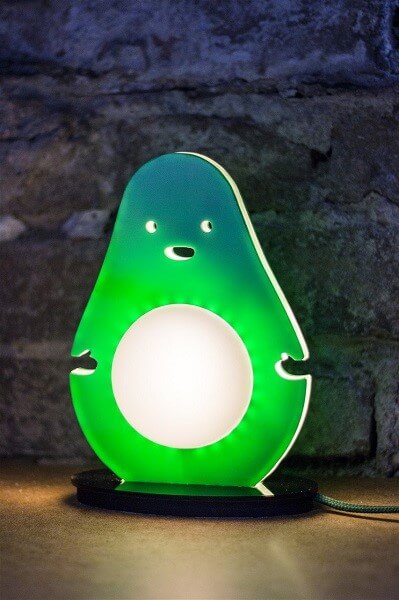 Next came the KADO which is a smaller lamp, yet it was the first lamp that left the 2D realm of the previous lamps and presents a three dimensional shape. KADO is a personified avocado. Its thickness provides with its eyes the illusion that they actually follow the person watching the lamp.